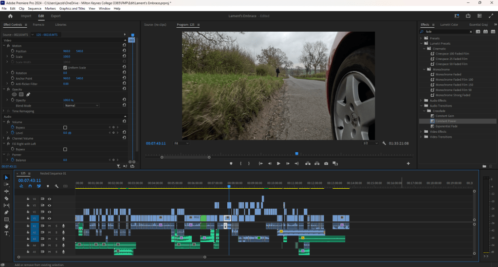 Not too much happened this week, other than helping out more groups and continuing to work on my Final Major Project. I’ve almost finished synthesizing my research that was performed in preparation for the project, as well as making steady progress on the edit. I’ve started the first couple of paragraphs on my evaluation and I hope to make much more progress over the next couple of weeks as the deadline draws closer.