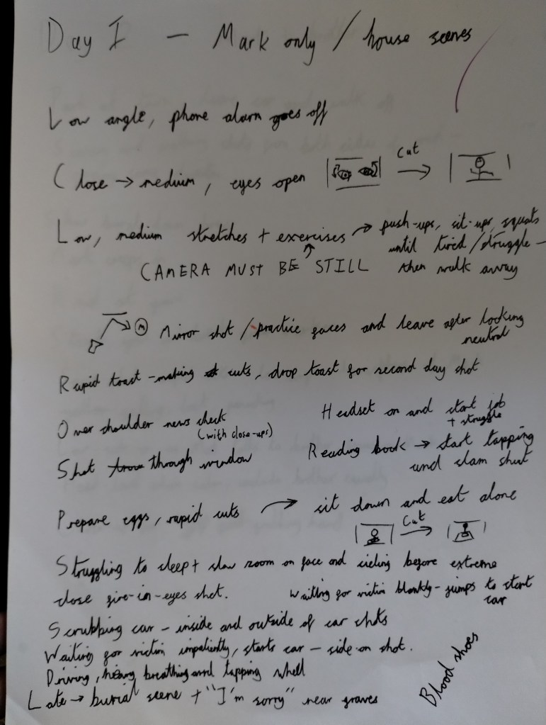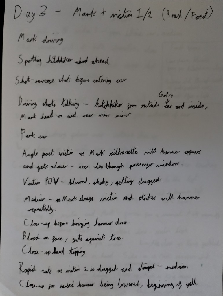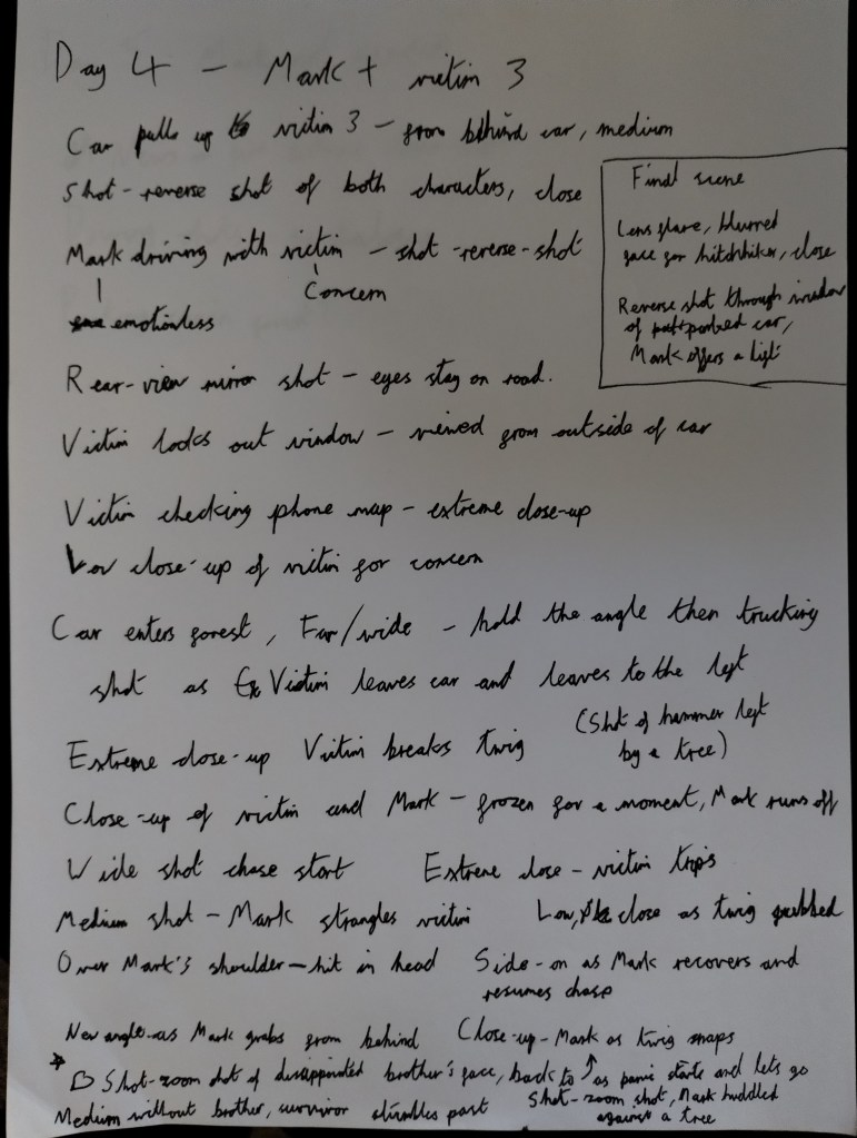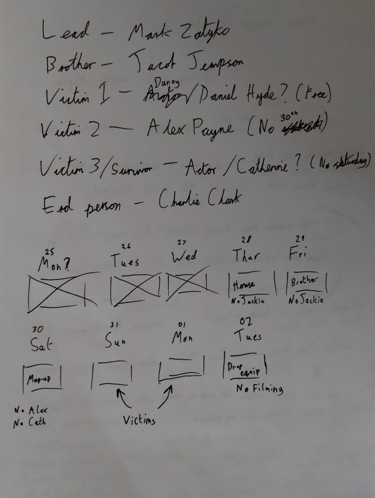 Here’s a copy of one of my call sheets as well – one was created for each filming day, with 4 being produced in total: